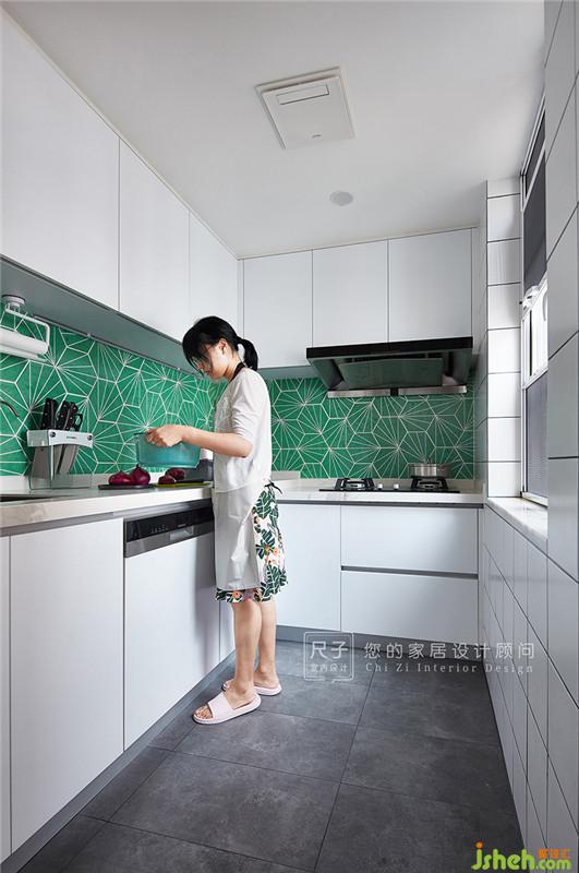 原廚房面積較小,我們將入門左側(cè)的小臥室改做廚房,擴寬客餐廳面積的同時,又能保證廚房的基本功能。