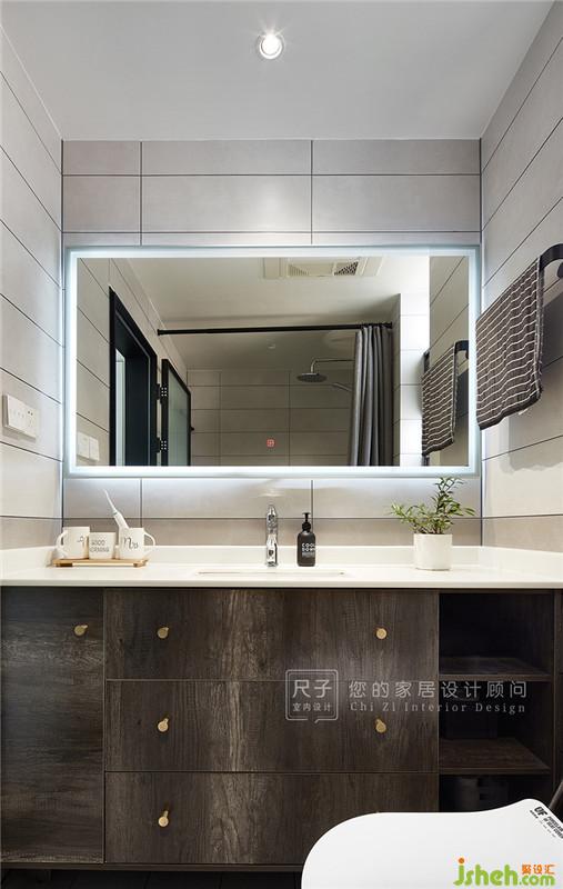 浴室柜深色的紋理藏著一家人忙碌的早晨時光。