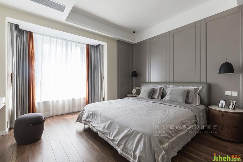 床頭護(hù)墻板造型給業(yè)主夫妻更安全的心理感受。