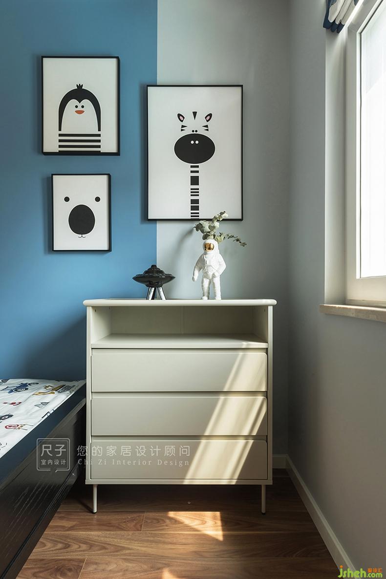 沉靜藍(lán)+明媚的活力黃,兩種色彩在男孩房交匯,夫妻倆希望孩子能成長為處事沉穩(wěn)的陽光大男孩。