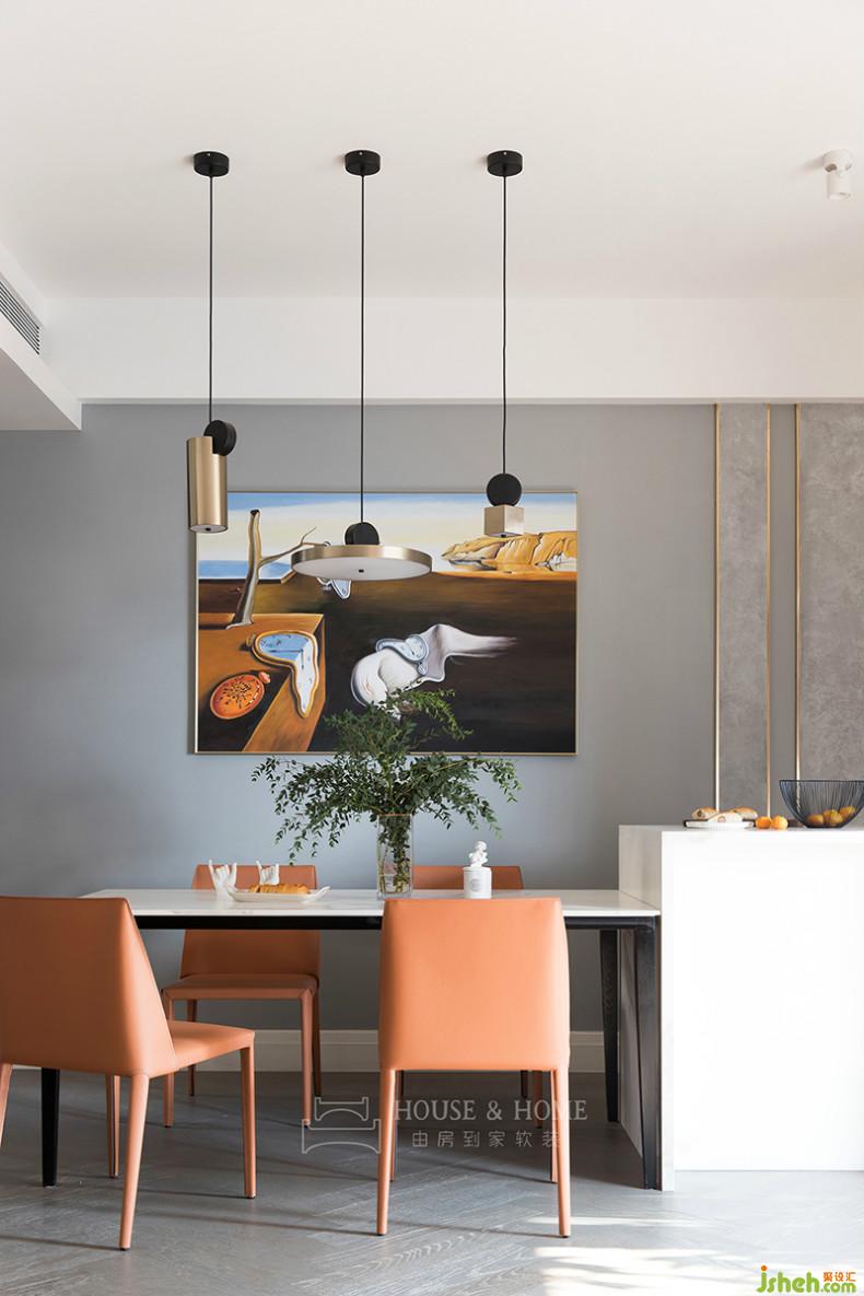 這幅《永恒的時間》作為餐廳視覺焦點,餐椅、燈具的色彩源于畫作,室內(nèi)設(shè)計師在大空間內(nèi)形成跳躍的走勢,勾勒出音符般的律動感。