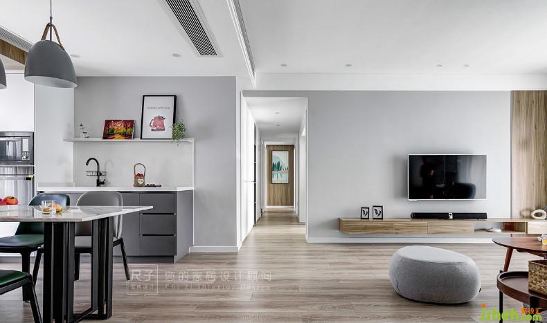 灰色是沉穩(wěn)考究的,也是柔和高雅的,搭配通鋪的木地板,帶來似水年華般的意境。室內(nèi)設(shè)計師整個空間布局張弛有度,通過材質(zhì)的切換,在保持空間整體性的同時,又有明顯的分區(qū),讓家更有層次感。