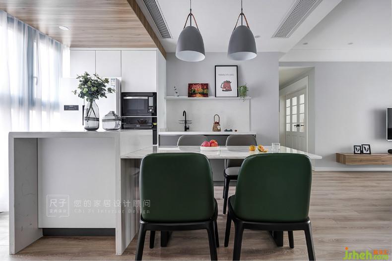 我們將陽臺擴(kuò)進(jìn)屋內(nèi),成就了陽光大西廚,也是對廚房功能區(qū)的補(bǔ)足。室內(nèi)設(shè)計師吧臺與餐桌相連,巧妙的落差設(shè)計讓餐廳更顯別致。