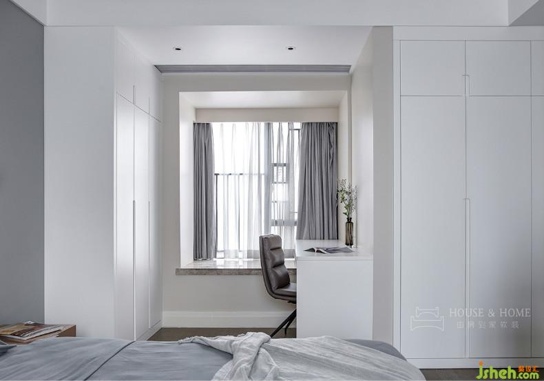 依飄窗搭建的閱讀區(qū),也是Z小姐的梳妝臺(tái)。考慮到實(shí)際需求,我們將衣帽間打通,釋放出的空間用來(lái)做主臥和次臥的兩面收納柜。