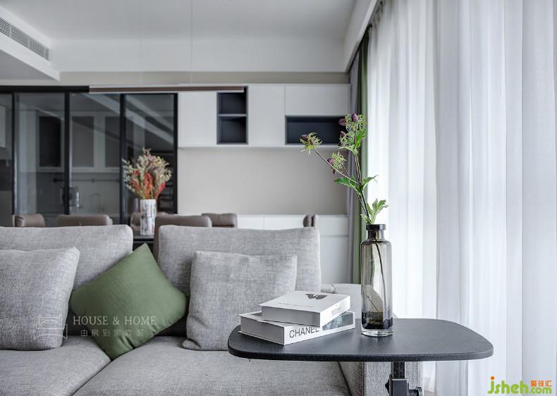 白色輕紗,將一部分陽(yáng)光阻隔在外,還有一部分頑強(qiáng)地鉆進(jìn)屋內(nèi),在木地板上跳躍,與插花共舞,帶來(lái)靈動(dòng)與生機(jī)。