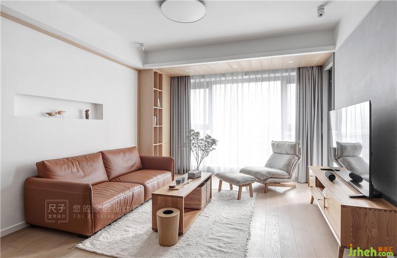 客廳設(shè)計追求一種淡雅深邃的意味,化繁為簡,擯棄過多的修飾,大面積原木色與白色結(jié)合,搭配清新自然、線條簡潔的家具,加上棕橙色點綴一二,達(dá)到一個舒適的居住狀態(tài)。