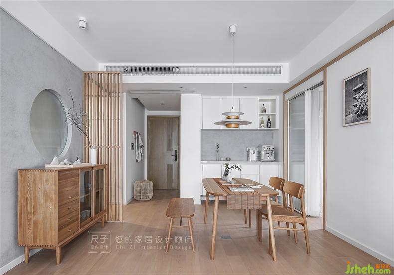 圓形造型端景,除了在功能上在可以將光線引入公衛(wèi)以及廚房,加強空間聯(lián)動性外,更強調(diào)一種空靈、靜謐的居住禪意。室內(nèi)設(shè)計師