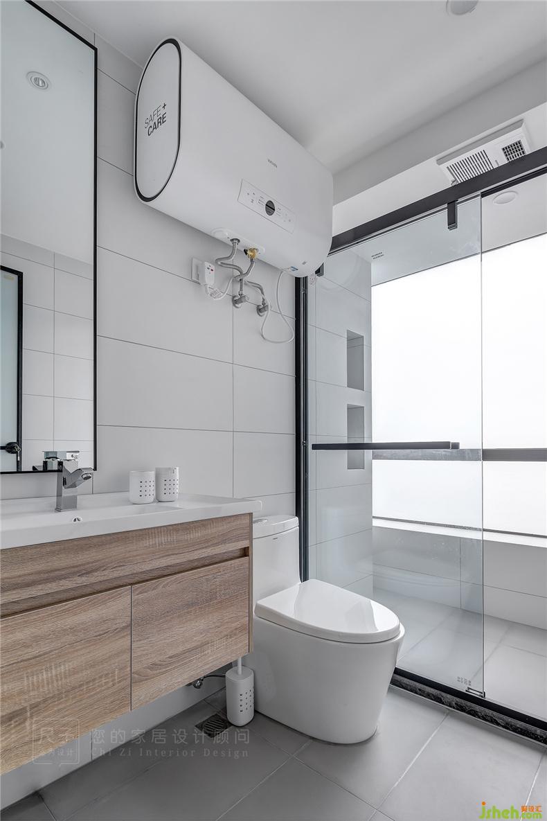 木質(zhì)與白色小方磚相遇,衛(wèi)生間遵循簡約純粹的美感展示