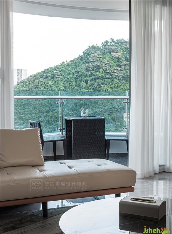 拉開窗簾來到弧形陽臺(tái)上,在這里曬曬太陽,吹吹暖風(fēng),將屋外美景盡收眼底。