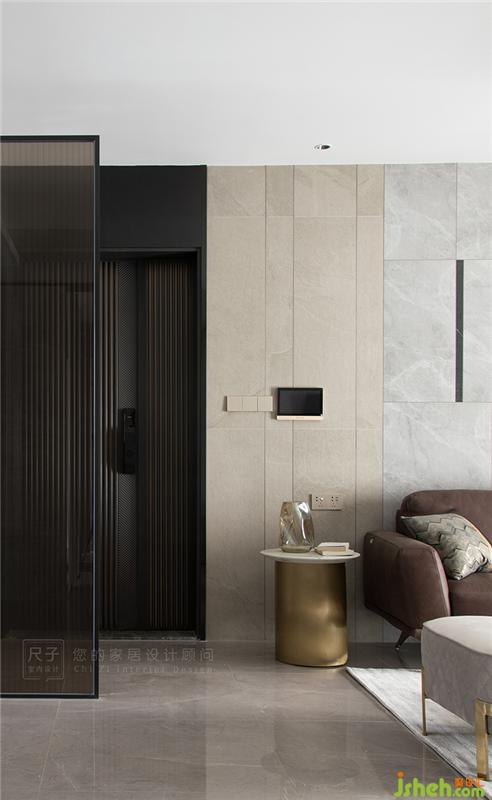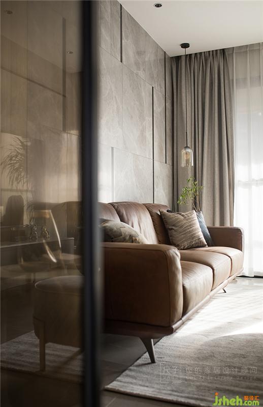 黑白灰的遞進(jìn),玻璃、皮質(zhì)布藝的穿插,不同材質(zhì)互相糅合,平衡了墻面固有的克制與簡(jiǎn)潔;細(xì)節(jié)之處更顯精致。
