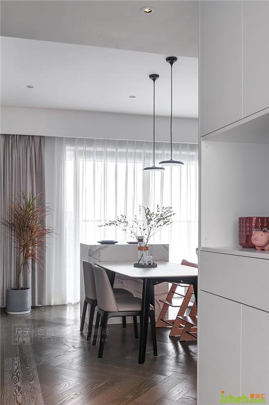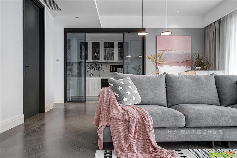 廚房與餐廳之間的隔墻改為玻璃推拉門,使空間變得更連貫、通透,還能防止做飯時(shí)的油煙進(jìn)入客餐廳。