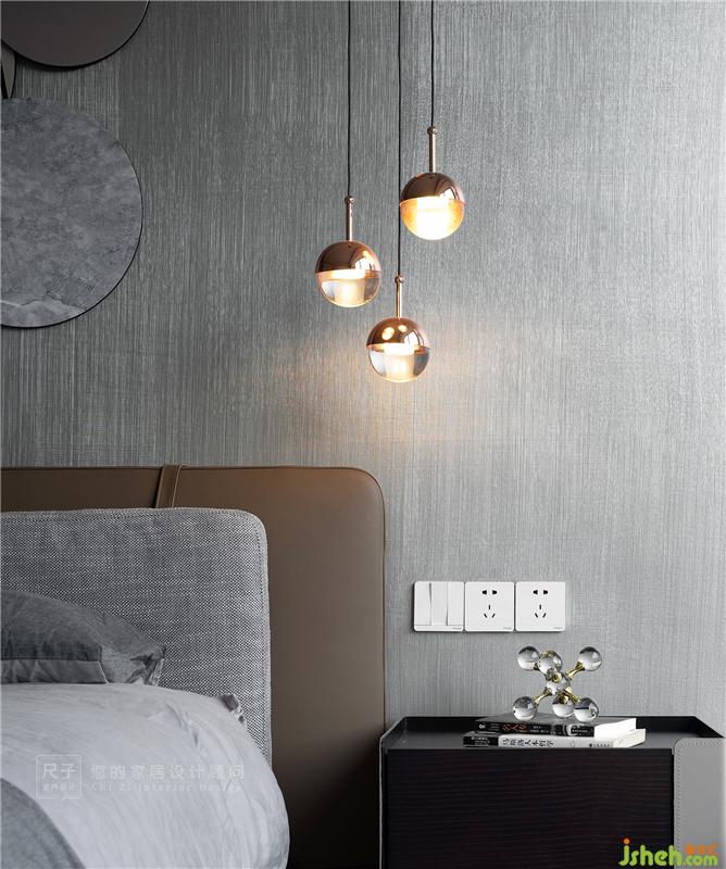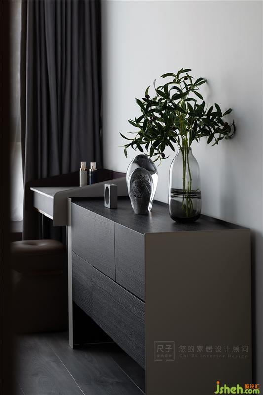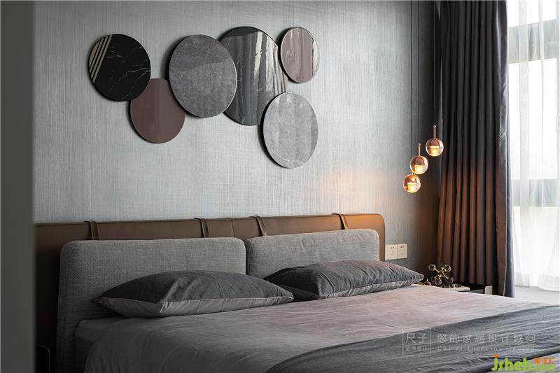 主臥色彩上更為低調(diào)柔和,大面積灰色的鋪陳讓空間更顯寧靜雅致。