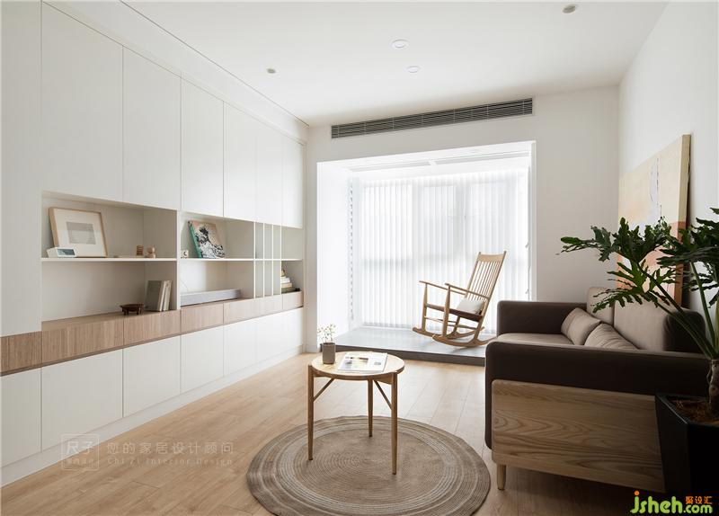 客廳以白色和木色為基調(diào),布局簡(jiǎn)潔大方,大面積的白色搭配百葉窗,賦予空間簡(jiǎn)約質(zhì)樸的韻味。