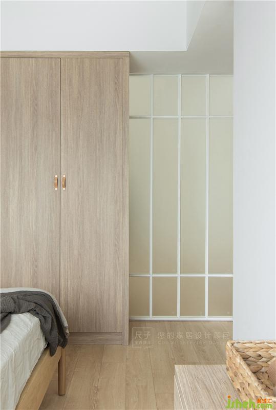 主臥與多功能房之間原本的墻體拆除,改造成衣柜+推拉門的組合,臥室的收納難題隨之被解決,磨砂玻璃的推拉門讓各個(gè)空間之間透露著隱秘的聯(lián)系。