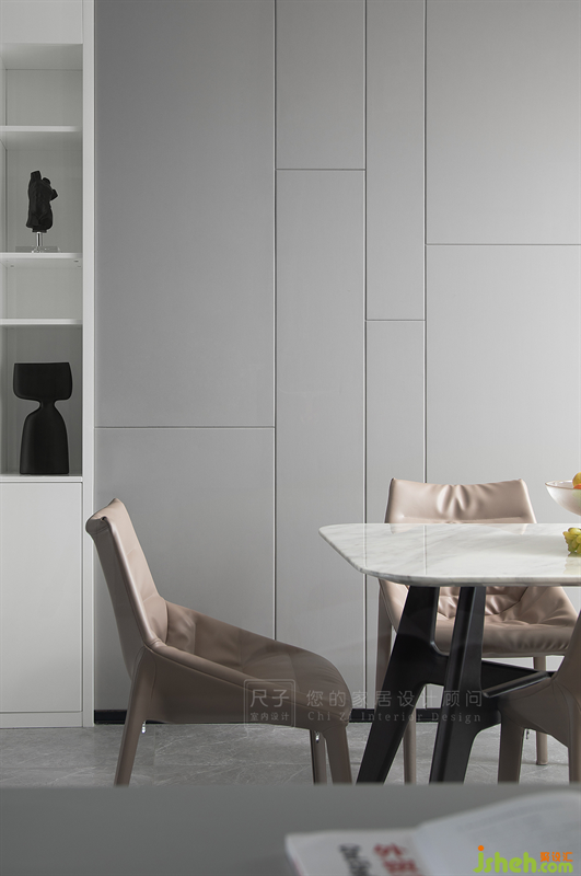 于是設(shè)計(jì)師做了一排隱形的柜門,“看不見”的收納讓餐廳顯得更加簡潔;可以180°打開的柜門,既能實(shí)現(xiàn)長期的收納需求,也可以滿足用餐期間臨時(shí)放置物品的需求。