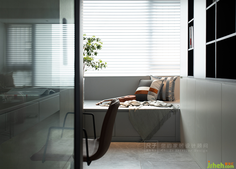 原本的推拉門封窗,深圳家居設(shè)計(jì)成獨(dú)立學(xué)習(xí)區(qū),銜接側(cè)面的一整排儲物柜,收納功能強(qiáng)大。