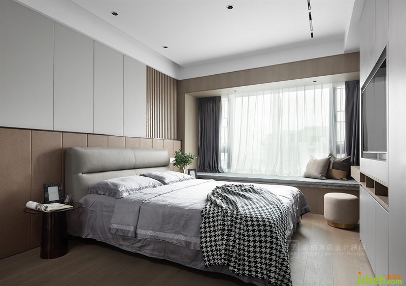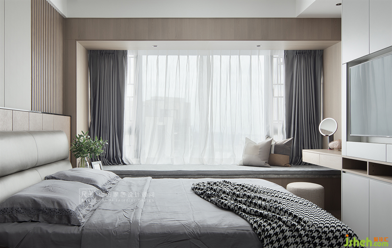 床尾增加了一排儲物空間,內(nèi)嵌電視,滿足了男女主人睡前觀影的需求。