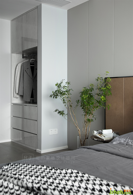 主臥是典雅淺淡的基調(diào),大面積的木色+白色延伸在空間各處,木材溫潤的色澤,給人足夠的親切感。