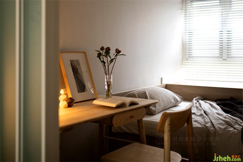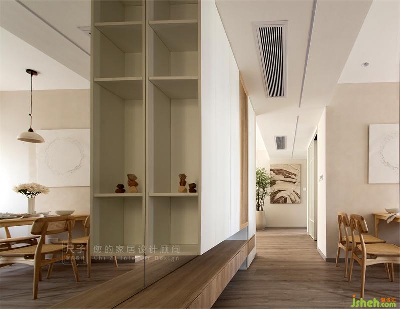一扇木格柵柜門、嵌入式鏡面,緩解了小空間的沉悶感;虛實相生的設計筆法,刻畫出疏密有間,開合有序的空間格局。