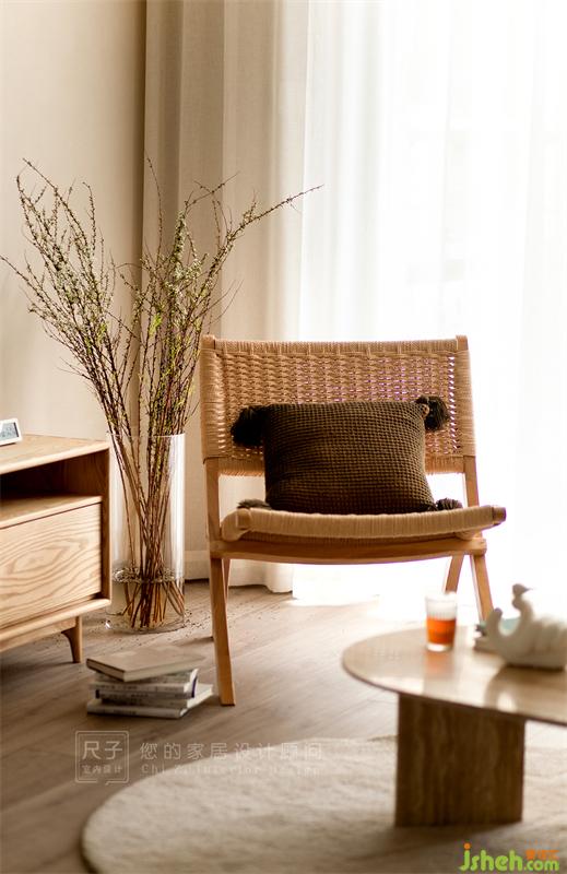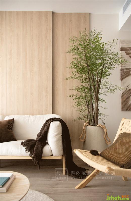 客廳色調(diào)清淺而純粹,原木色的運用給整個空間帶來溫潤的觸感。