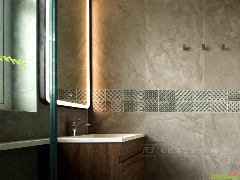 做舊的灰色瓷磚有一種古樸大氣的模樣,小花磚的點綴讓空間顯得復(fù)古又不失活潑。