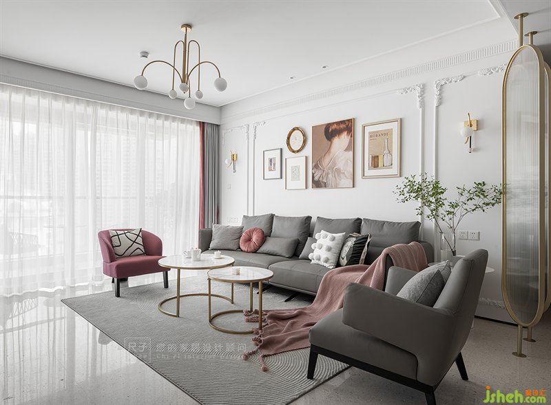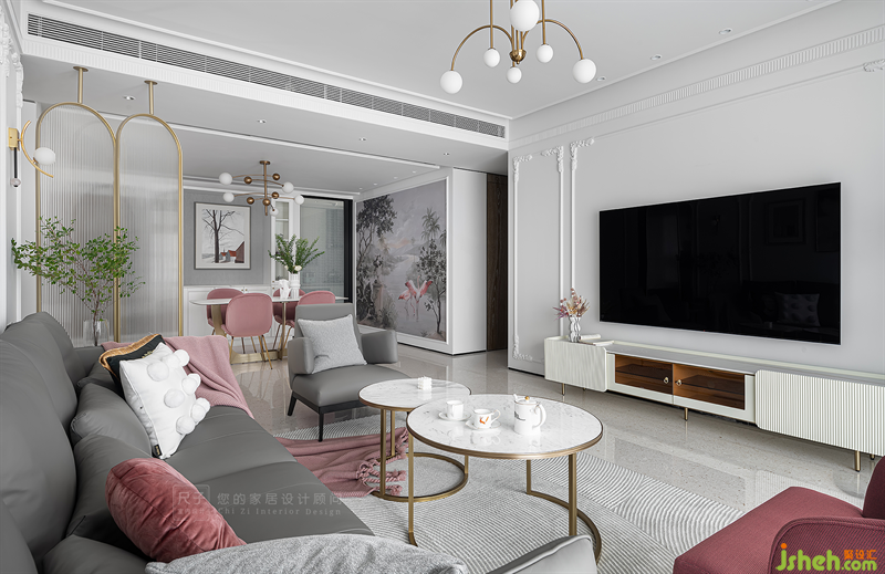 設(shè)計師中和了兩代人在審美上的不同,將古典優(yōu)雅的法式簡化,以歐式雕花角線,刻畫出復(fù)古華麗卻并不復(fù)雜的墻面。沒有多余的造型,只以不同色彩的涂料勾勒出一個優(yōu)雅精致的家。