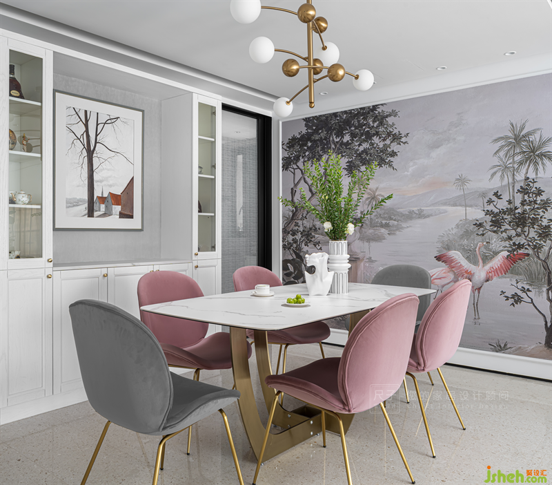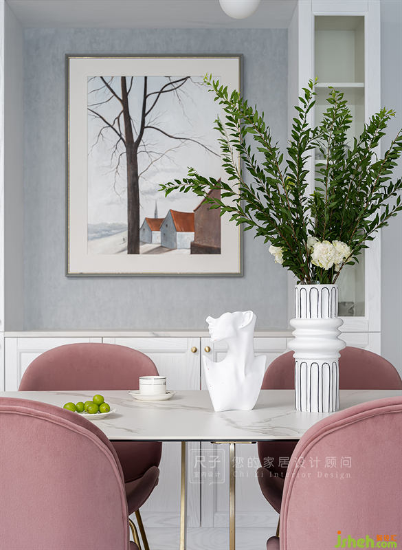 精美的線條勾勒出這個家的基底,低調(diào)的灰白中加入輕柔的粉與藍,將復(fù)古優(yōu)雅且輕松愜意的氛圍渲染得淋漓盡致。