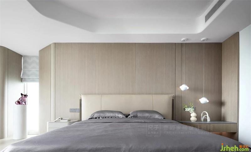 臥室空間依舊是溫潤且有質(zhì)感的原木色調(diào),天花圓潤的曲線呈現(xiàn)出一種圍合感,讓屋主有一種悠閑自在的居住狀態(tài)。
