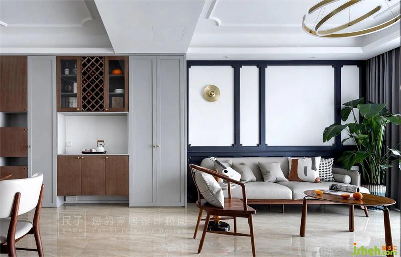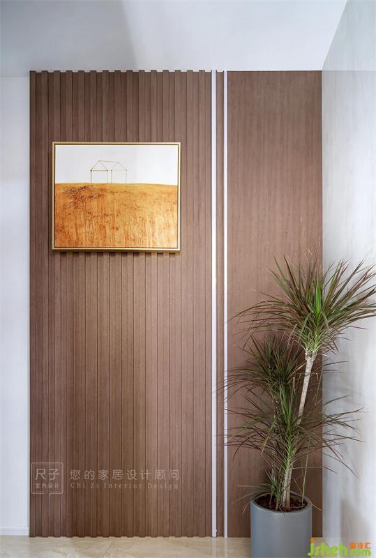 9.3㎡的儲(chǔ)物柜從玄關(guān)門(mén)洞延伸至客廳,滿足這個(gè)家對(duì)收納的需求;古樸的木色夾雜適度的灰,有一種悠悠古韻。