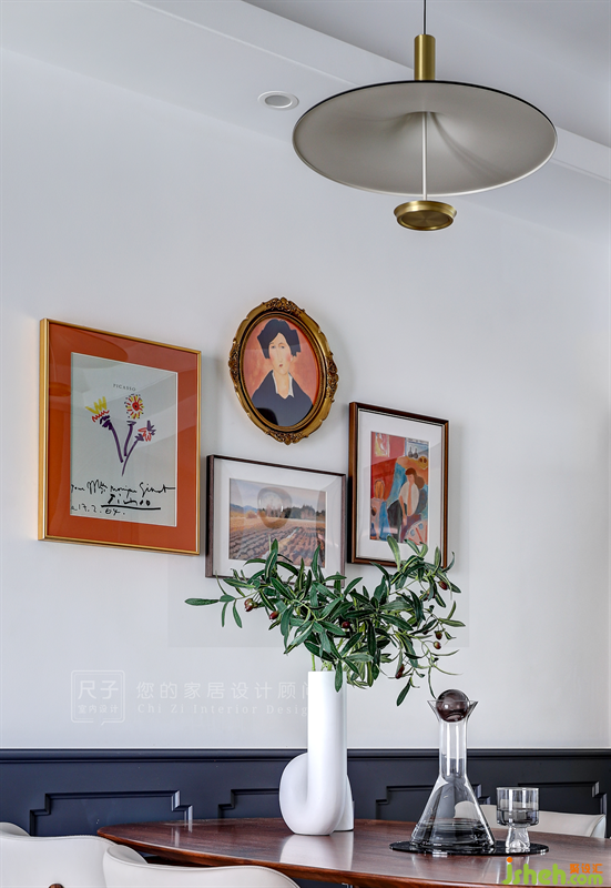 一組復(fù)古裝飾畫(huà),豐富著空間的層次與精致感。
