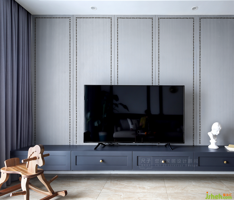 裝修設(shè)計(jì)拆除了原本的電視背景墻,做了硬包處理,搭配表面的柳釘裝飾,細(xì)致的裝扮讓空間更加輕松、柔軟。