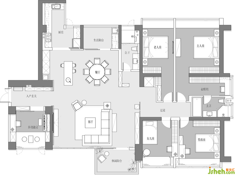 原房采光通風(fēng)很好,但格局混亂,空間利用率低,我們通過調(diào)整布局,還原屋主心目中有質(zhì)感、不俗氣且實用的家: