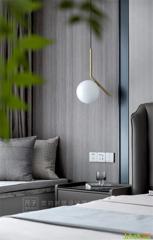 主臥的基調(diào)依舊是業(yè)主喜歡的黑白灰,相比公共空間更注重實用和舒適性。