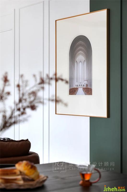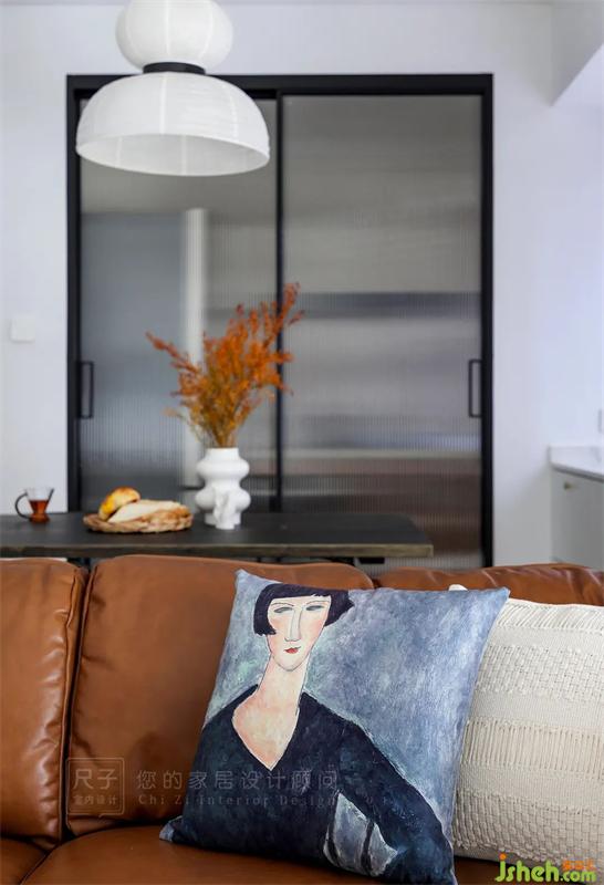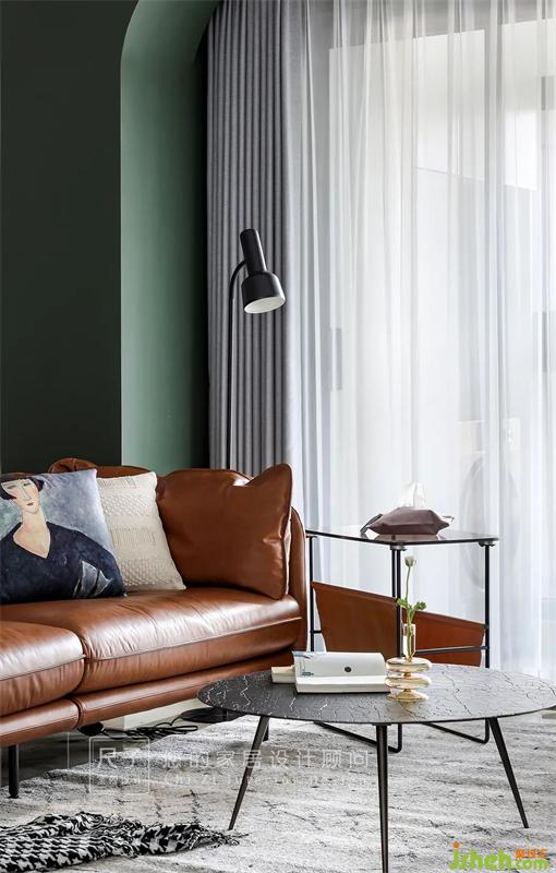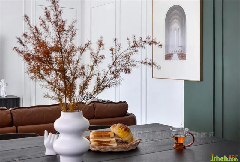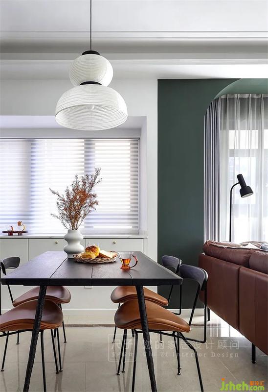大膽地在墻面以及軟裝中融入墨綠、暖棕、磚紅等色彩,讓整個(gè)家在硬裝改動(dòng)不大的情況下,盡可能顯得更加輕盈、通透。