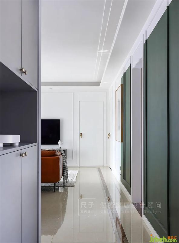 設(shè)計(jì)師在此基礎(chǔ)上,將房門改色,原瓷磚踢腳線改換為白色實(shí)木踢腳線。