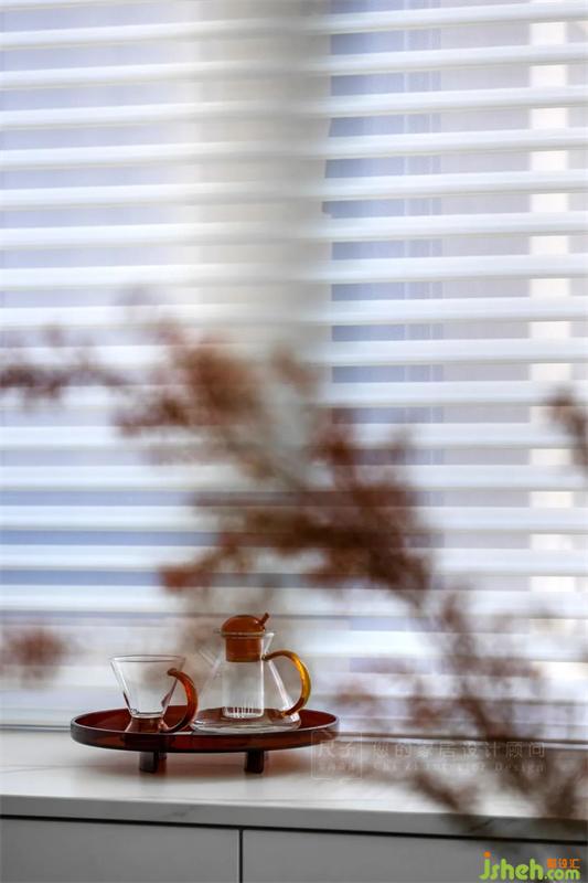 窗邊的空間也被利用起來,半高的柜體既是收納區(qū),也是餐邊小西廚,純白的配色透露著簡約卻有溫度的煙火氣息。