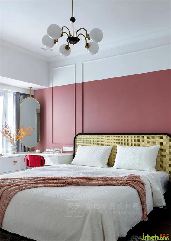 雖是喜歡的色彩,但也沒有選擇滿鋪,適度留白的設計,讓睡眠區(qū)呈現(xiàn)出輕盈面貌,輕松和舒適的感覺自然而然產(chǎn)生。