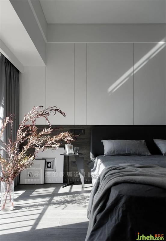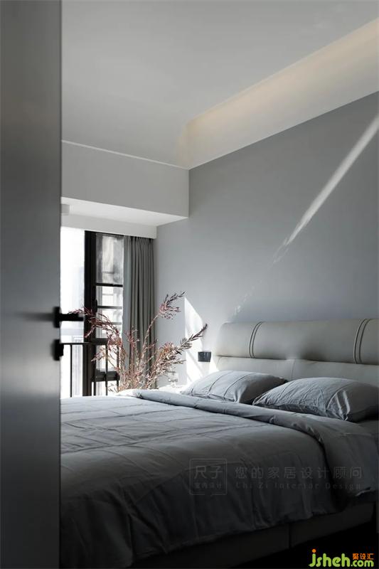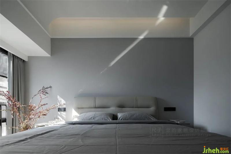 暖灰的墻面以及弧形天花設(shè)計,營造出淡雅柔和的自然空間,不經(jīng)意灑進(jìn)室內(nèi)的陽光,給簡約的臥室增添一抹暖意。