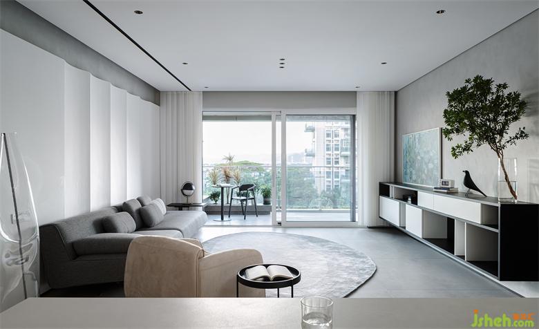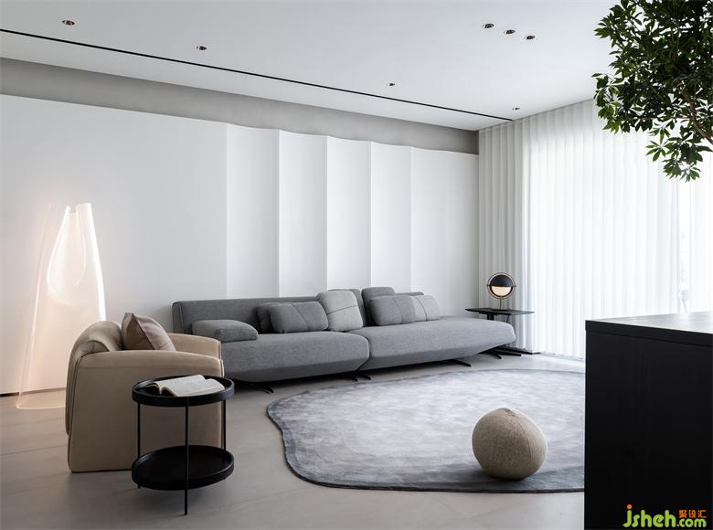 屋主希望家里是開闊通透的,于是便舍棄了笨重的茶幾,深圳家裝設計以一塊不規(guī)則造型的地毯,圈出適合孩子玩樂的“安全區(qū)”。
