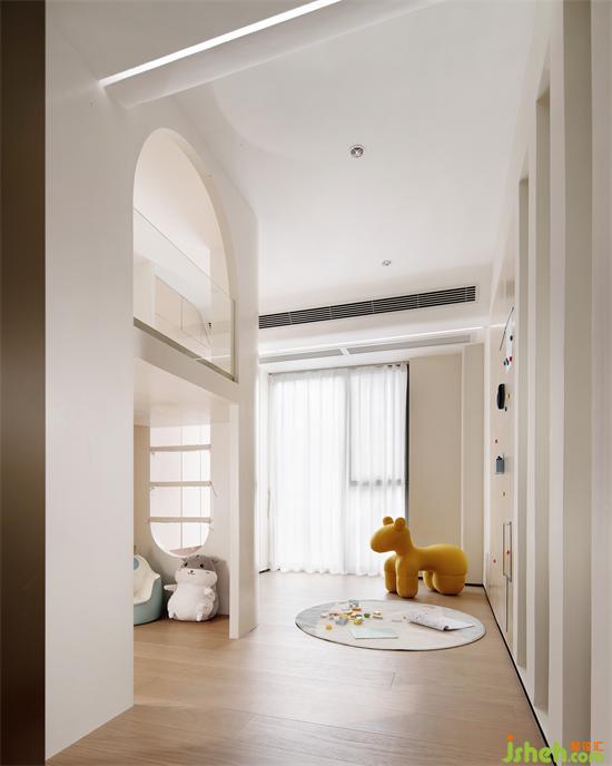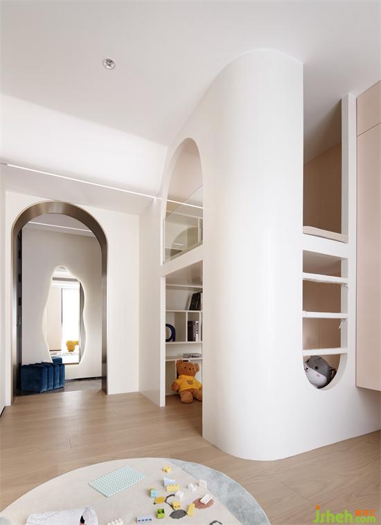 作為小朋友平時娛樂玩耍、閱讀的主要場所,深圳家裝設(shè)計活動區(qū)通過弧形、柔和的線條來營造,“小城堡”增添了趣味性和互動性。