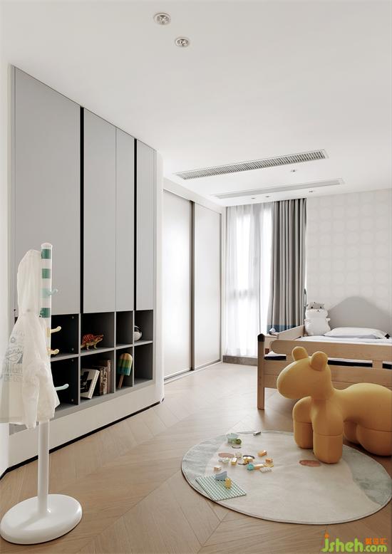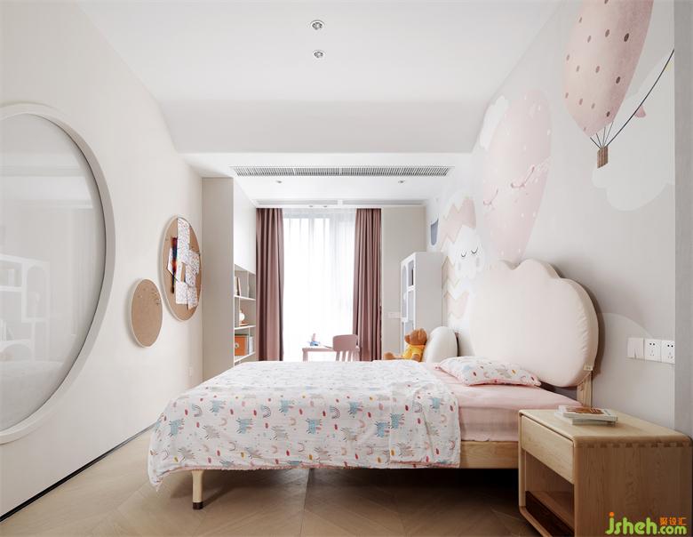 小孩們的生活不是一成不變,家具擺放也時常發(fā)生變化,深圳家裝設(shè)計通過淡淡的粉和灰色調(diào)、軟裝、墻紙的搭配來體現(xiàn)一些兒童化屬性,不做過度的裝飾限制小孩房未來發(fā)展的可能性。