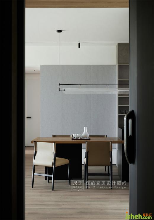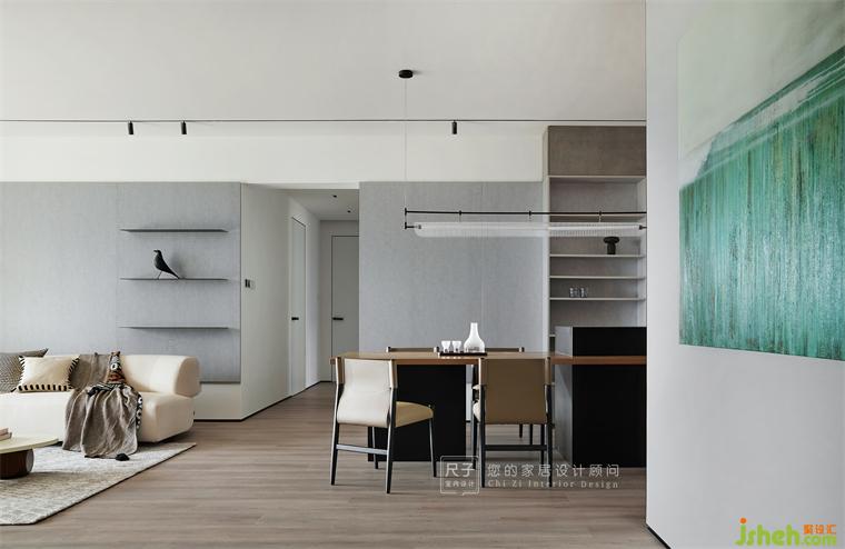 客餐廳的灰色背景墻為整體,家裝設(shè)計打造一體化空間,凝練的區(qū)域結(jié)構(gòu)也讓我們認真審視空間本身的藝術(shù)感。