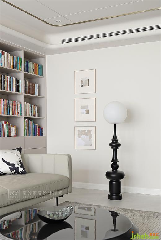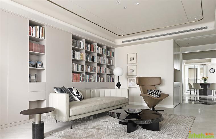 客廳通過巖板、飾面板等材質(zhì)的運用,深圳裝修設(shè)計以簡練的設(shè)計語言,恰如其分地搭配提升品質(zhì)與層次感;沙發(fā)背景墻書柜文藝的設(shè)計,與空間淡雅的調(diào)子,打造一個舒適、精致,又充滿詩意的氛圍。