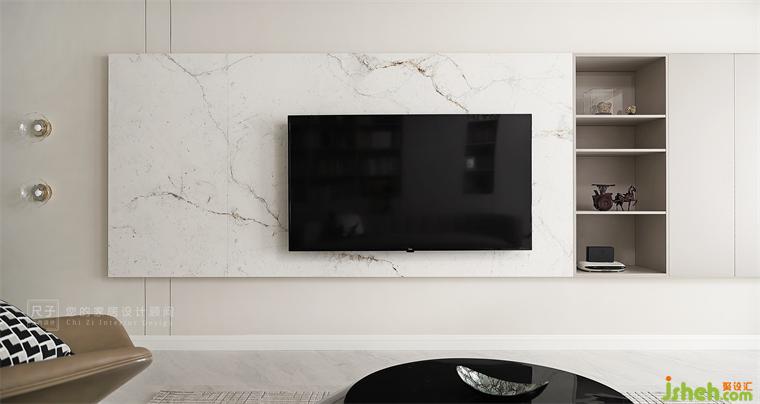 1. 客廳與次臥之間的墻體改造,讓次臥的衣柜有了安置的空間,電視背景墻也能儲物。