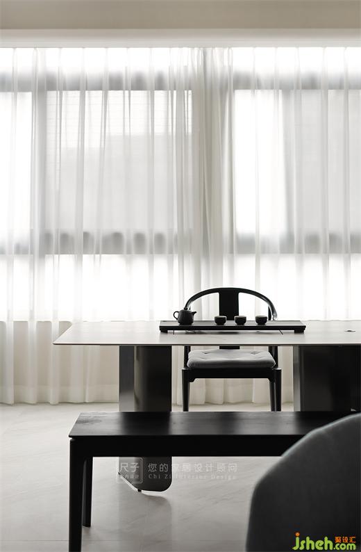陽臺與客廳視野一覽無余,摒棄匆忙且紛擾的生活圍城,暢聊閑聊、喝一盞茶,陽光透過紗簾傾瀉,達至更精致的生活享受。
