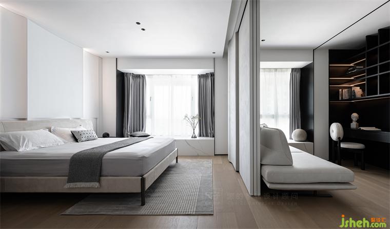盡可能補(bǔ)充主臥室的功能,又不會(huì)打擾到睡眠區(qū)。