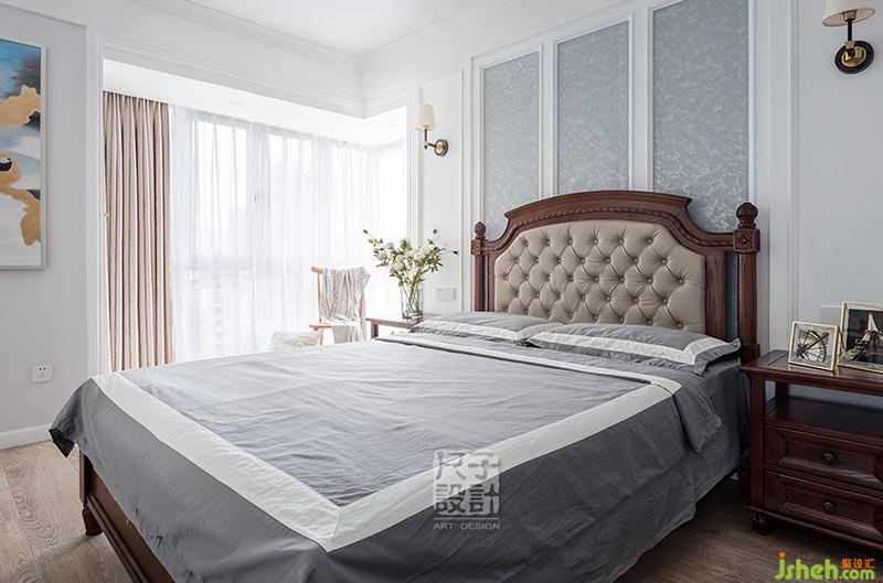 主臥色調(diào)沉浸在一片低飽和度的高級灰中,我們利用進(jìn)門處為主臥設(shè)計了一排儲物柜,主人可將衣物放入其中,良好的收納功能讓生活變得井井有條;背景墻上的藝術(shù)涂料素雅別致,為空間增添了藝術(shù)氣息。