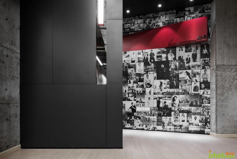 首層入口處,員工照片墻映入眼簾,讓小夥伴們工作之餘找到自己身影和家的歸屬感。照片墻上方的巨型圖案,運(yùn)用公司歷年項(xiàng)目圖片匯聚成城市絢爛夜景,構(gòu)築出建築師用畫筆點(diǎn)亮