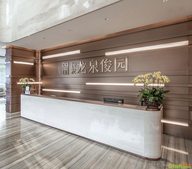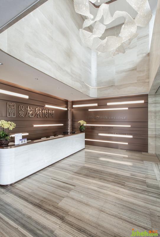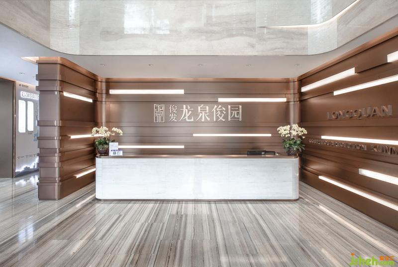 進入售樓處前廳,俊發(fā)·龍泉俊園的字樣和營銷板塊的立體圖案映入我們的眼球,與同紋理的地面大理石相互呼應(yīng), 引領(lǐng)者賓客進入大廳。
