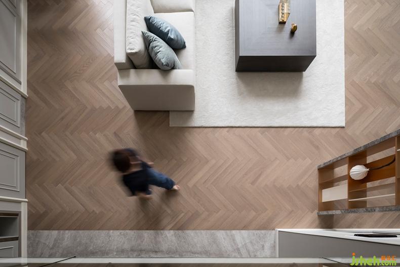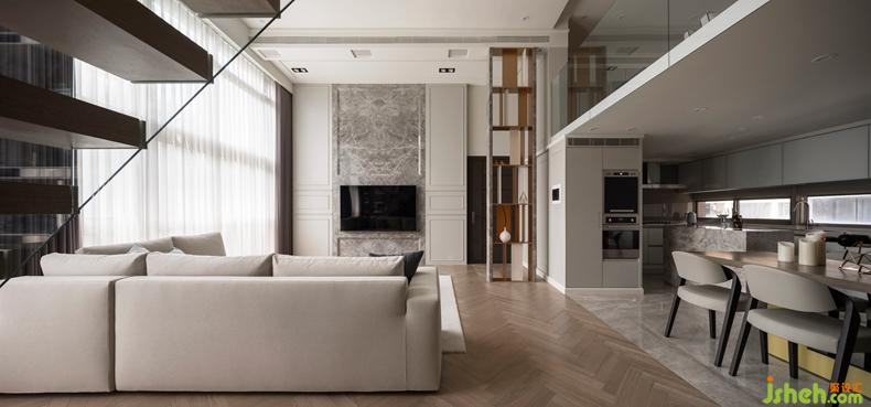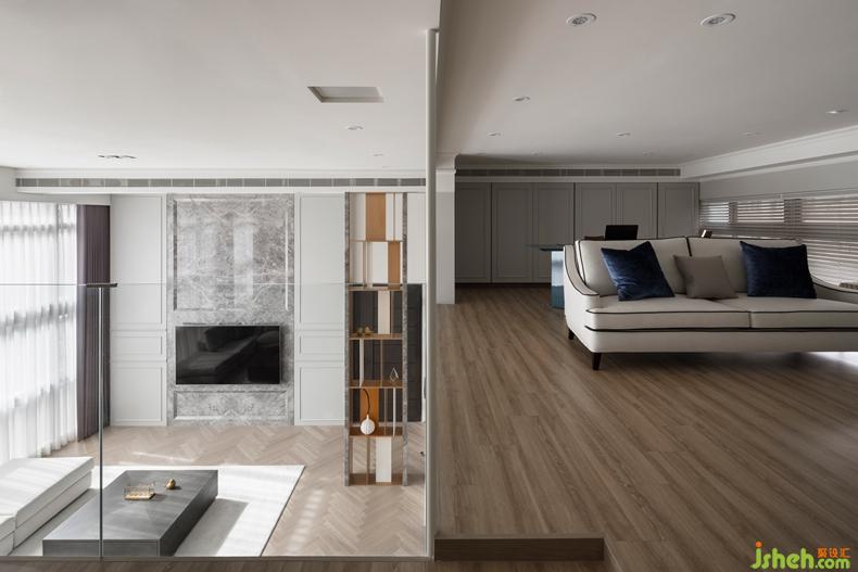 在設(shè)計(jì)中,設(shè)計(jì)師希望能透過(guò)自然光場(chǎng)的優(yōu)勢(shì),借鏡于空間中,由玄關(guān)進(jìn)入室內(nèi),引導(dǎo)進(jìn)來(lái)的是采光面最大的場(chǎng)域客廳區(qū),并緊連結(jié)著廚房餐廳空間,光場(chǎng)優(yōu)勢(shì)加上4.2M挑高空間,渲染整個(gè)居家空間,整體空間氛圍下更為舒適大方。設(shè)計(jì)公司
